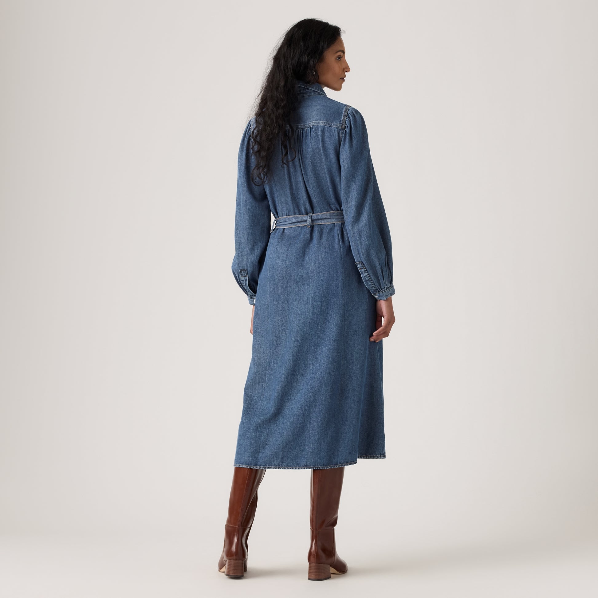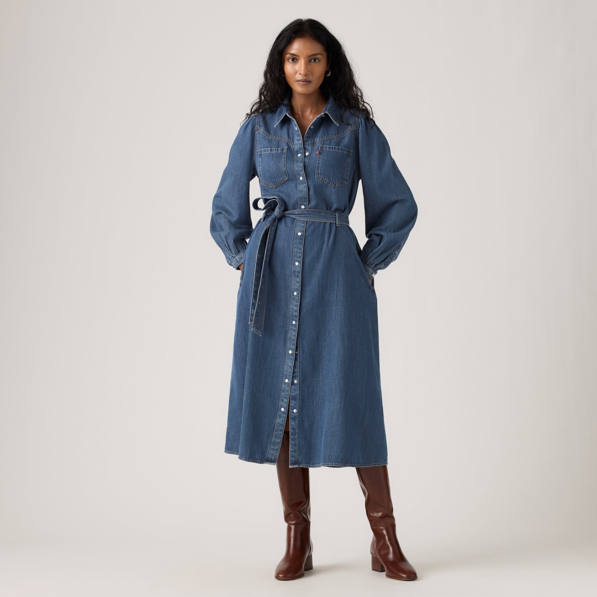 LEVI'S® WOMEN'S JOURNEY LONG-SLEEVE MAXI DRESS - MED INDIGO - FLAT FINISH