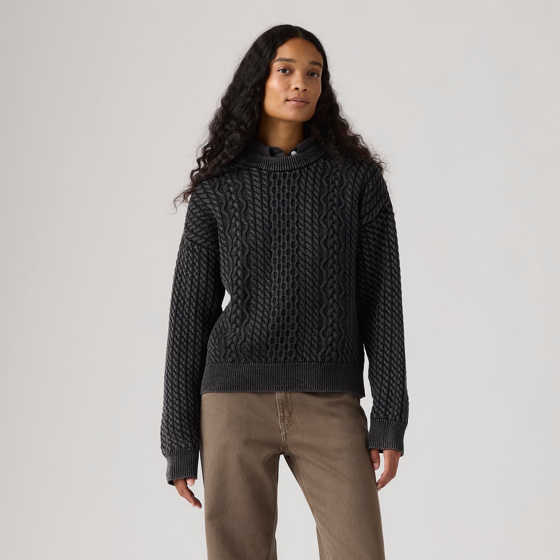 LEVI'S® WOMEN'S LEILAH CABLE CREWNECK SWEATER - BLACK